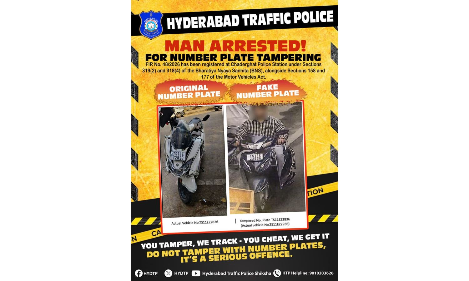Biker uhićen u Hyderabadu zbog neovlaštene promjene registarskog broja vozila