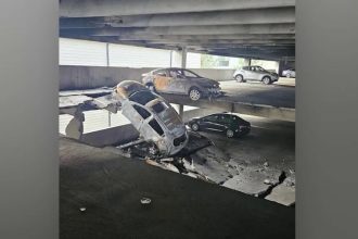 Oko 12 automobila izgorjelo, srušio se dio garaže u stambenom naselju Brookhaven