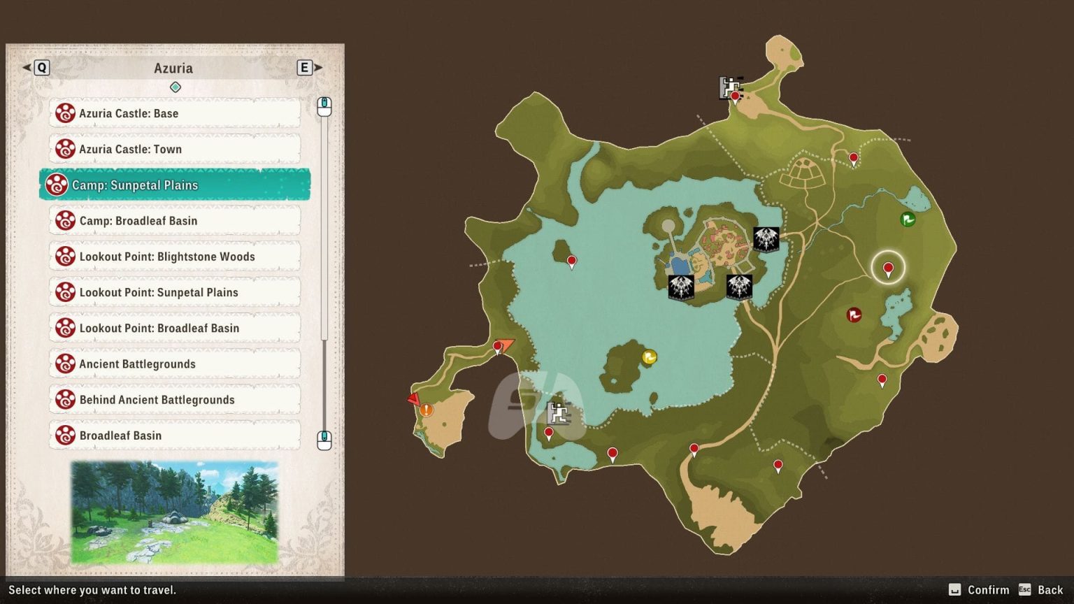 2. Odaberite točku do koje želite brzo putovati – Možete se kretati kroz različite regije, ali možete brzo putovati samo do lokacija koje ste ranije posjetili i otključali.