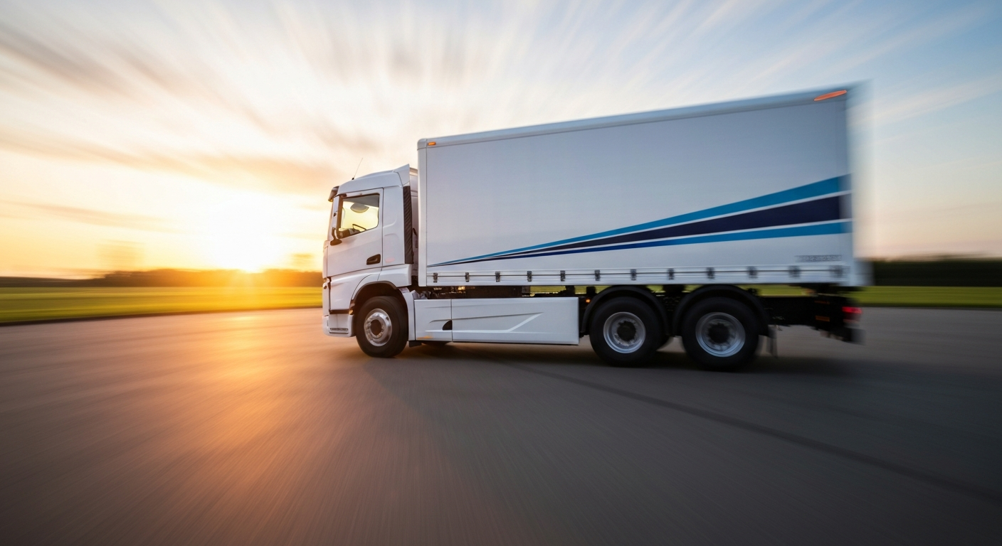 Apstraktno zamućenje svijetlih boja i dinamičnog kretanja koje predstavlja brzu vožnju električnog kamiona.