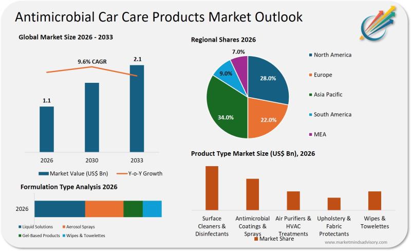 Tržište antimikrobnih proizvoda za njegu automobila će dosegnuti 2,13 milijarde USD do 2033., uz CAGR od 9,6%