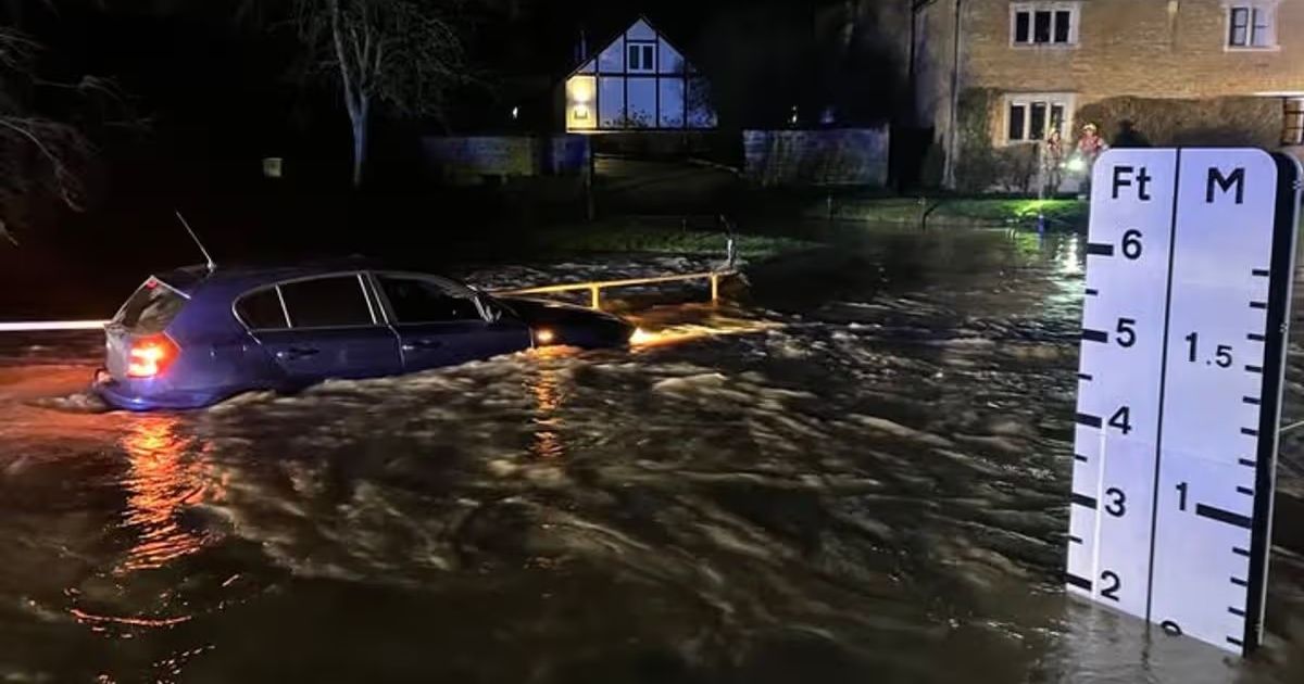 Vozač je nedavno pokušao proći kroz poplavni gaz na Hallaton Roadu u Medbourneu, blizu Market Harborougha, unatoč prisutnosti jasno označenih znakova koji su ukazivali na rizik. Te večeri, 15. siječnja, naišao je na iznimno duboku vodu koja je, prema mjeraču, iznosila gotovo dva metra.